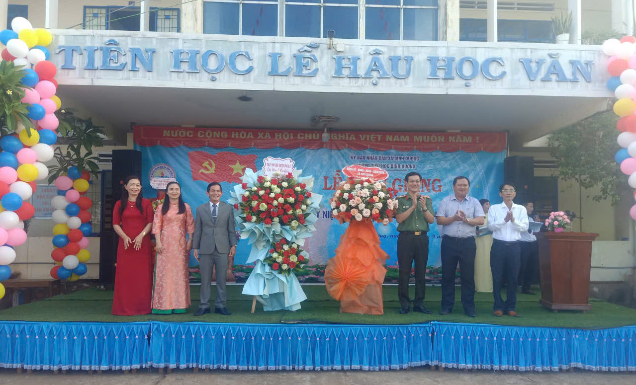 Về dự Lễ có các đồng chí: Ngô Cự Vinh - Tỉnh ủy viên, Phó Giám đốc Công an tỉnh Gia Lai; Phan Xuân Nam- Bí thư Đảng uỷ, Chủ tịch HĐND xã Bình Dương; Võ Đình Sơn – Uỷ viên Ban Thường vụ - Phó Chủ tịch UBND xã Bình Dương; Đại diện các phòng, ban chuyên môn của xã; Đại diện Ban đại diện cha mẹ học sinh; Cùng toàn thể quý thầy, cô giáo và học sinh của nhà trường.