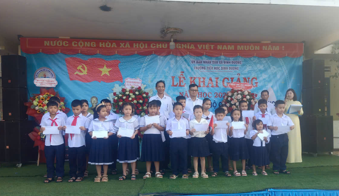 Cùng thời gian này, các trường học trên địa bàn xã Bình Dương cũng đã long trọng tổ chức Lễ khai giảng năm học 2025 – 2026. Năm học 2024- 2025, đã kết thức tốt đẹp, thầy và trò các trường vô cùng vui mừng khi gặp hái được nhiều thành tích đáng kể. Những kết quả đạt được chính là sự khẳng định vững chắc cho định hướng phát triển toàn diện của ngành giáo dục. Năm học 2025 – 2026, toàn xã Bình Dương có 689 học sinh mầm non công lập, 335 học sinh mầm non ngoài công lập, 1.862 học sinh tiểu học và 1.647 học sinh trung học cơ sở. Đây là nguồn lực quan trọng, hứa hẹn một năm học mới với nhiều thành công, tiếp tục khẳng định sự quan tâm của Đảng bộ, chính quyền và nhân dân trong việc chăm lo sự nghiệp trồng người, góp phần thực hiện thắng lợi nhiệm vụ phát triển kinh tế – xã hội địa phương.