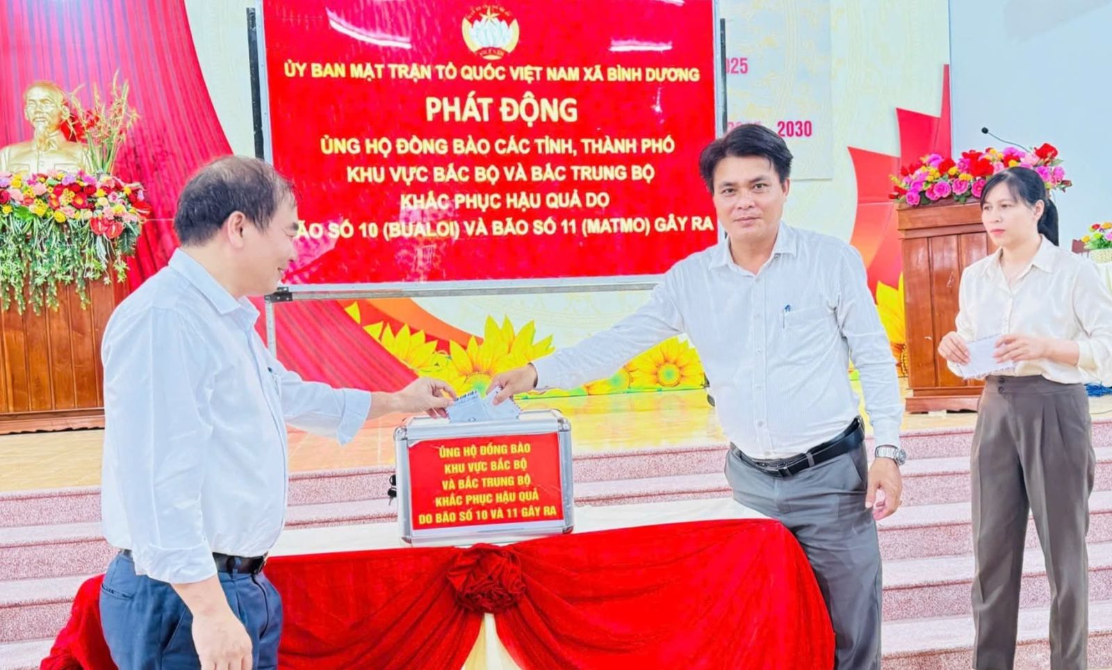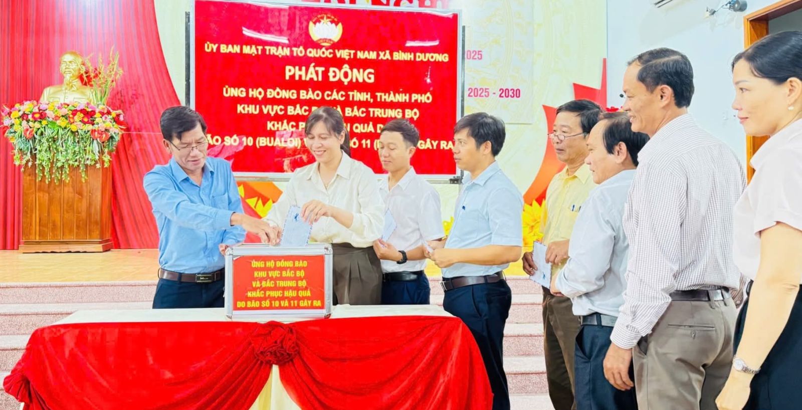 Sáng ngày 17/10, Ủy ban Mặt trận Tổ quốc Việt Nam xã Bình Dương tổ chức Lễ phát động ủng hộ đồng bào các tỉnh miền Bắc và Bắc Trung Bộ khắc phục hậu quả do cơn bão số 10 (Bualoi) và cơn bão số 11 (Matmo) gây ra.