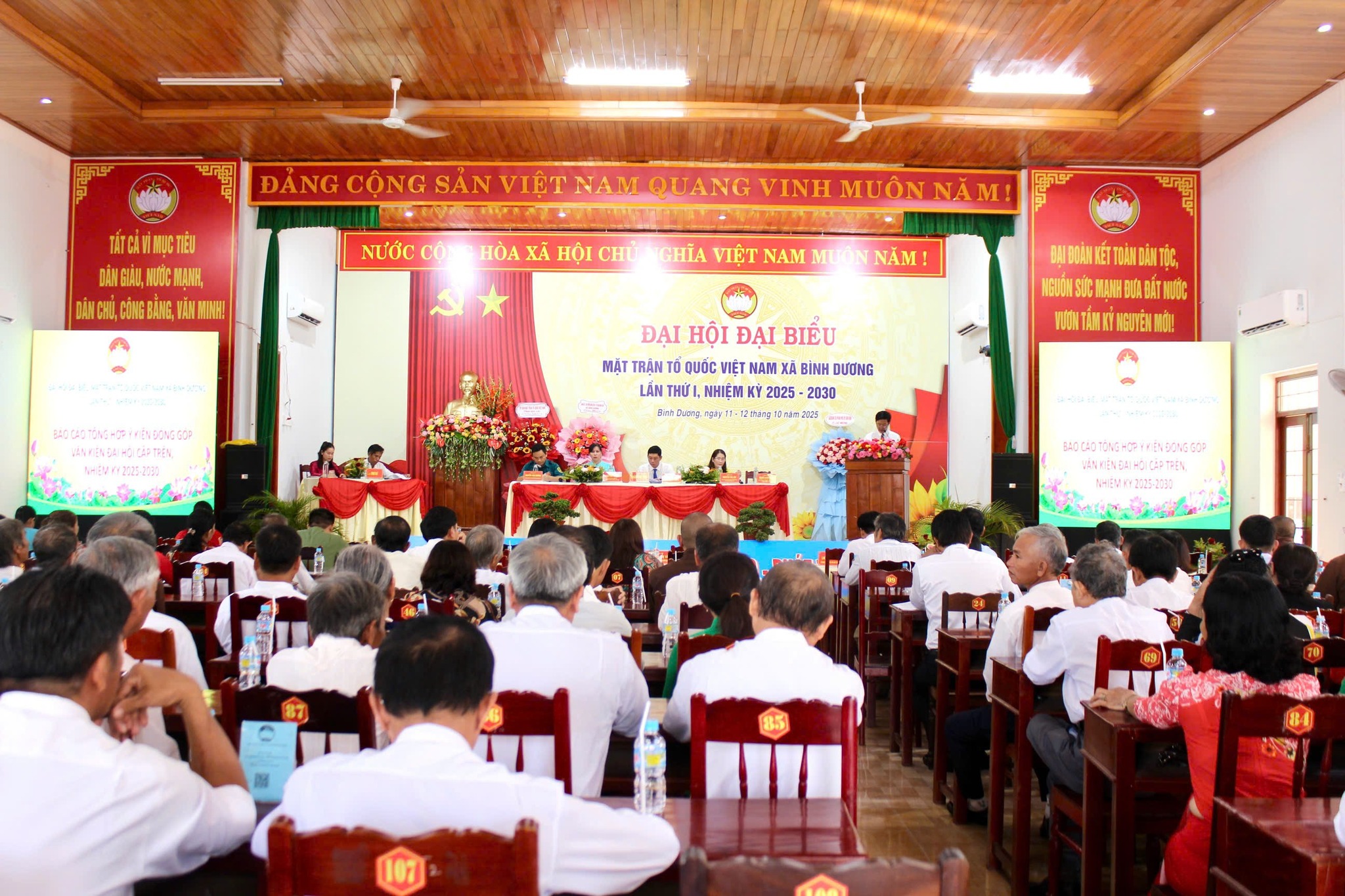 Phiên chính thức của Đại hội Đại biểu Mặt trận Tổ quốc Việt Nam xã Bình Dương lần thứ I, nhiệm kỳ 2025–2030 sẽ diễn ra vào lúc 7 giờ 30 phút sáng ngày 12/10/2025 tại Hội trường xã Bình Dương.