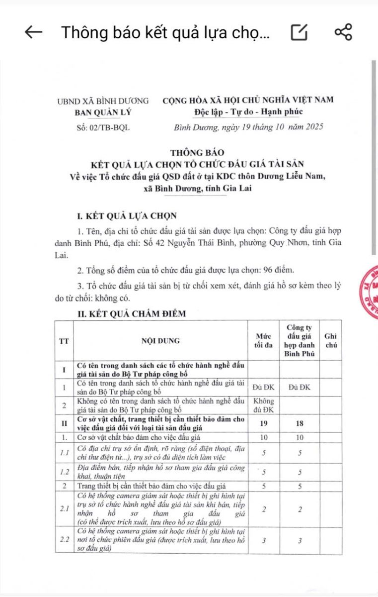 Chủ nhật, 19/10/2025 | 12:09 A- A A+ | THÔNG BÁO KẾT QUẢ LỰA CHỌN TỔ CHỨC ĐẤU GIÁ TÀI SẢN Chia sẻ Đọc bài Lưu